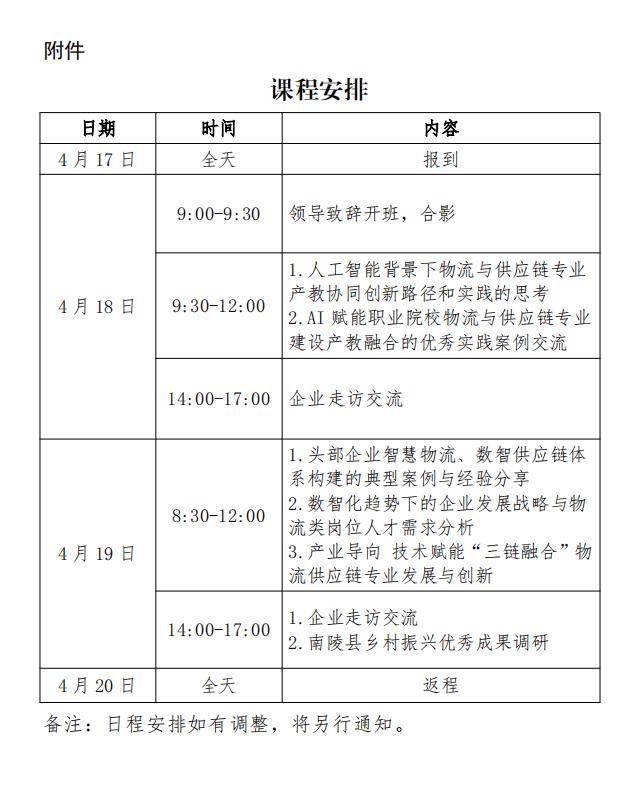 本次班是物风行指委职教强国“物流+电商+双创”复合型高技强人才培育项目扶植工做的主要使命之一。承担教育部物流教指委和物风行指委秘书处工做;含早),还将组织参训教师取行企专家环绕以下内容展开研讨交换:期间将组织参训教师赴芜湖市南陵县物流配备类企业展开实地调查,为院校专业扶植取成长供给数字化、定制化项目征询取办事。是全国现代物流工做部际联席会议单元,6.缴费体例:培训费能够提前汇款或现场扫码缴费(微信或领取宝),深耕物流取供应链教育理论立异和典型实践。中物联还取多个央国企开展人工智能大模子合做,食宿同一放置。